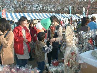 | 露店を歩いていたら、ハーブティーを飲ませてくれる お花屋さんがあって、よくよく話しを聞いてみると 以前、H.Pに遊びに行ったことがある昭和町の「YOU’樹」 というハーブショップの方だったんです。 うれしくなって子供達と一緒に写真を撮っていただきました。 とってもすてきな、奥様とご主人でした。 ハーブティーがとってもおいしく、ハーブを二つ買ってきました。 |